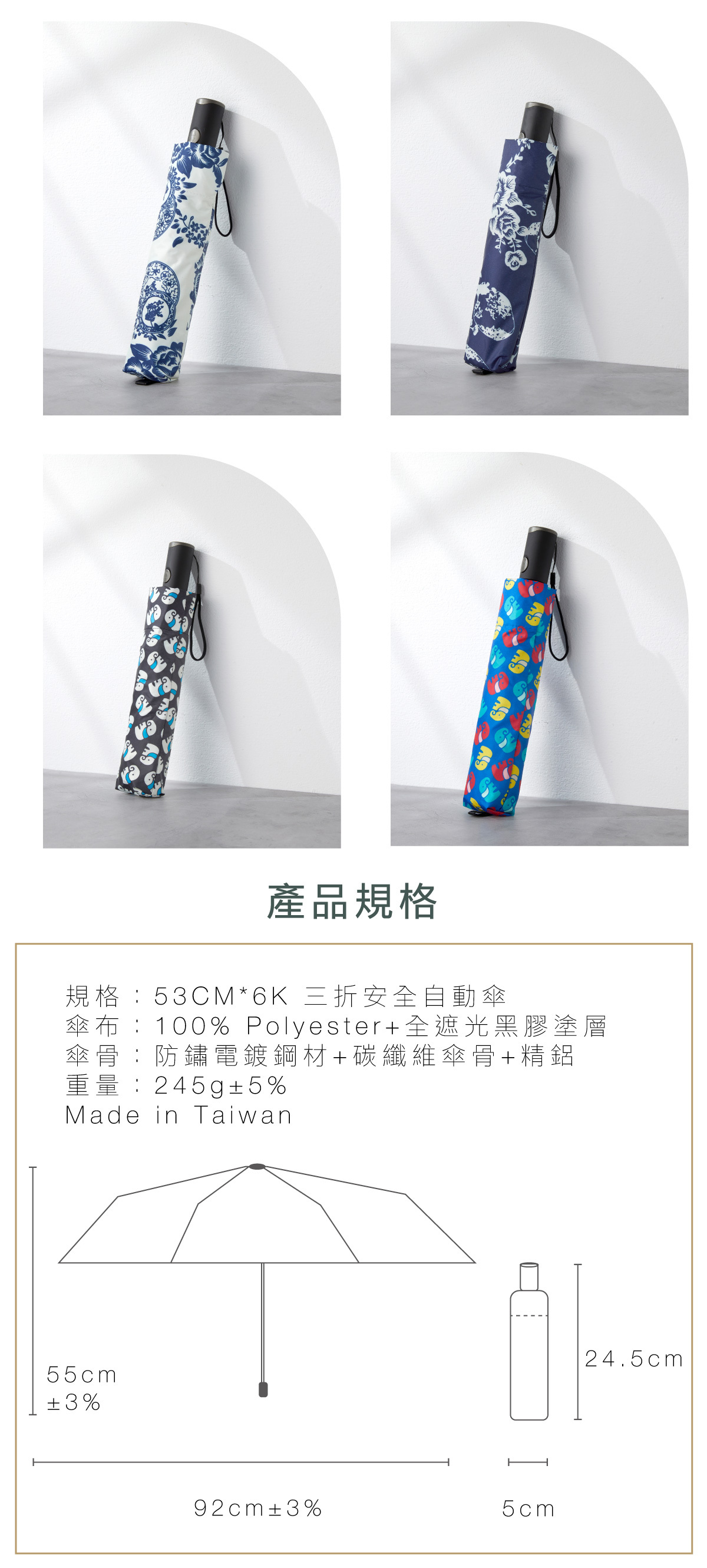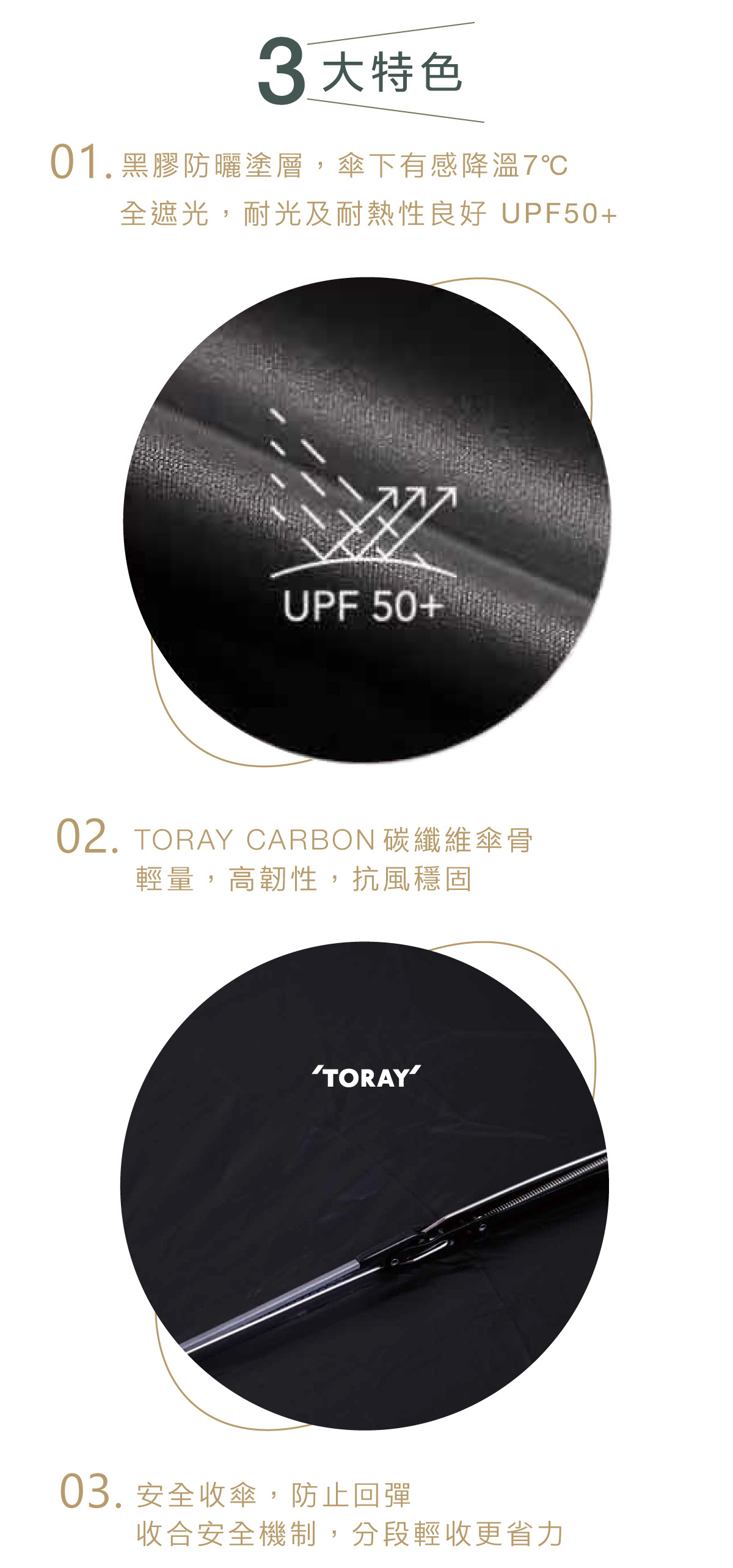 鋁合金傘+碳纖維傘骨,高韌性且輕盈