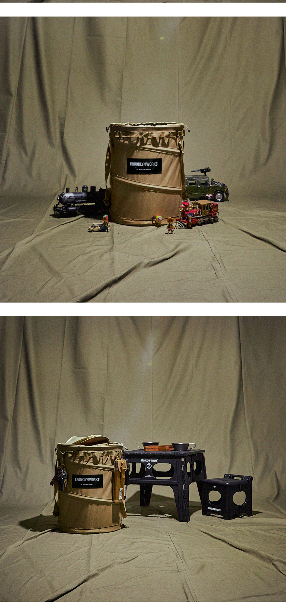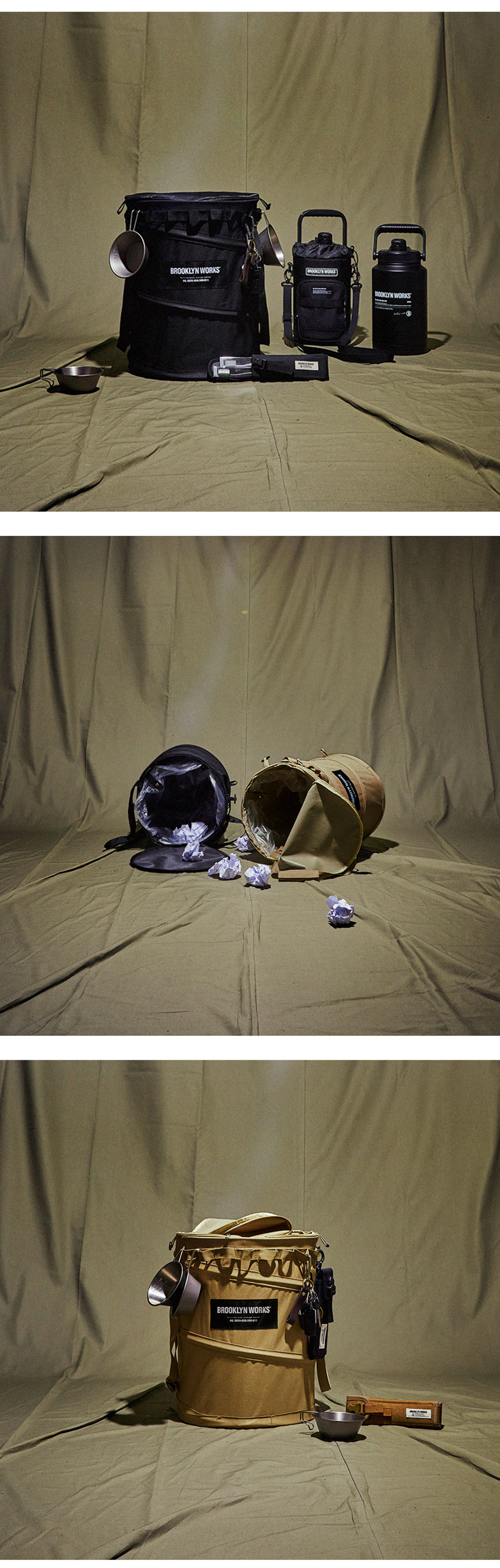 BLOOKLYNWORKS製作的「彈出包」。將其裝入彈簧形狀的彈出式包時,它是一種可以隨時折疊且能作為大型儲物籃使用。