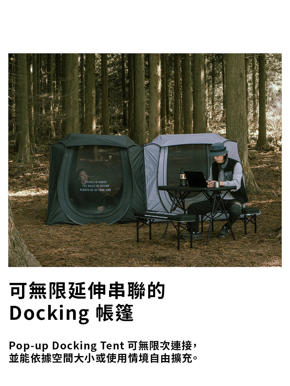 .可無限延伸的連接式帳篷,依照用途與人數調整空間大小