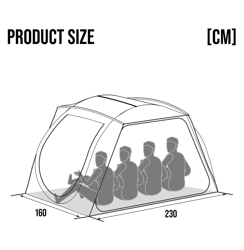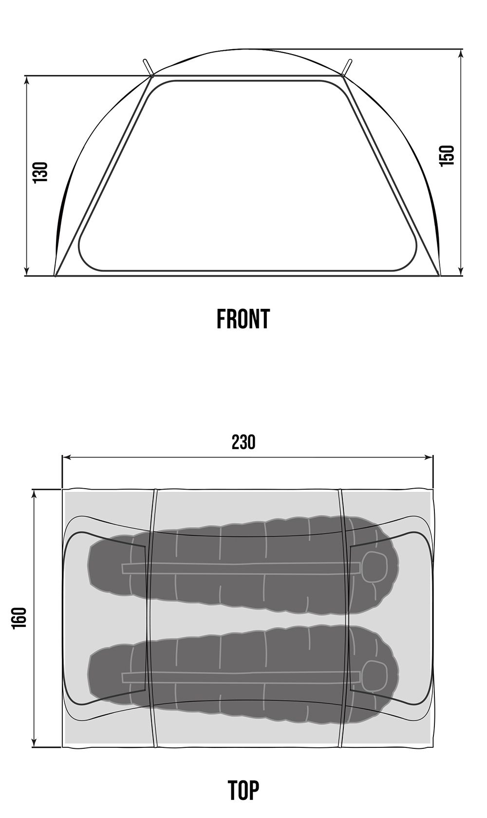 .帳篷內部空間寬敞,可舒適容納兩人平躺,適合 1~2 人的露營使用情境