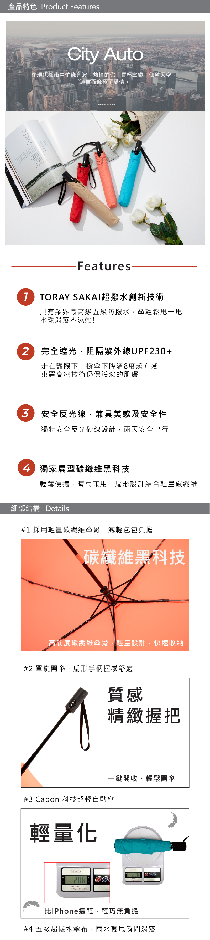 超撥水面料,碳纖維傘骨,晴雨兼用!