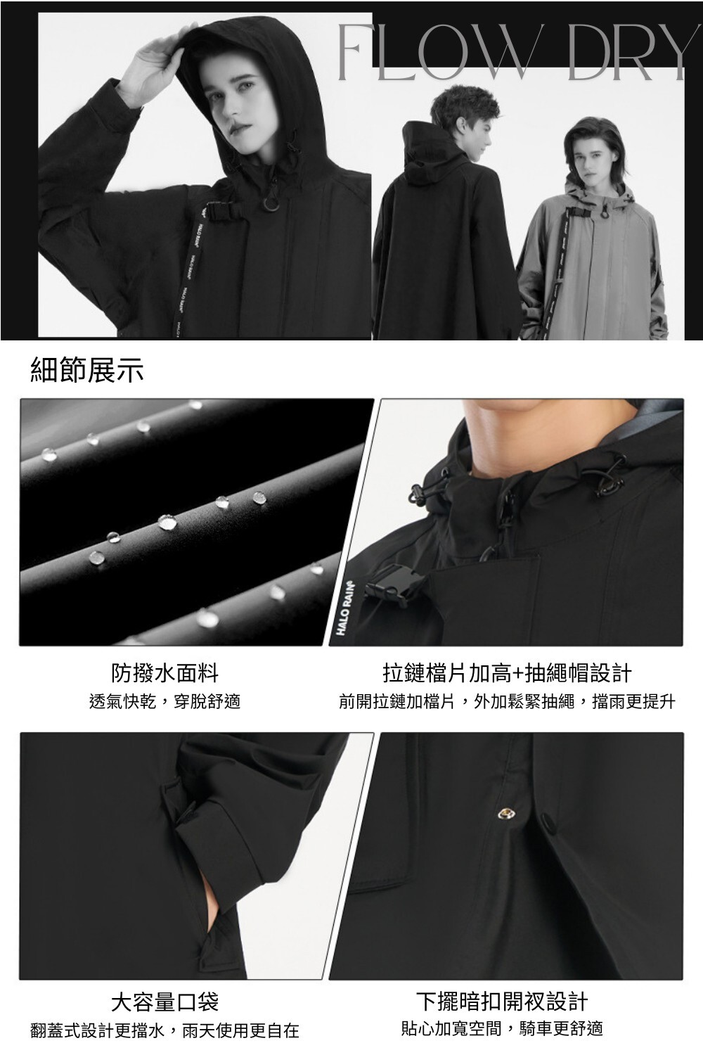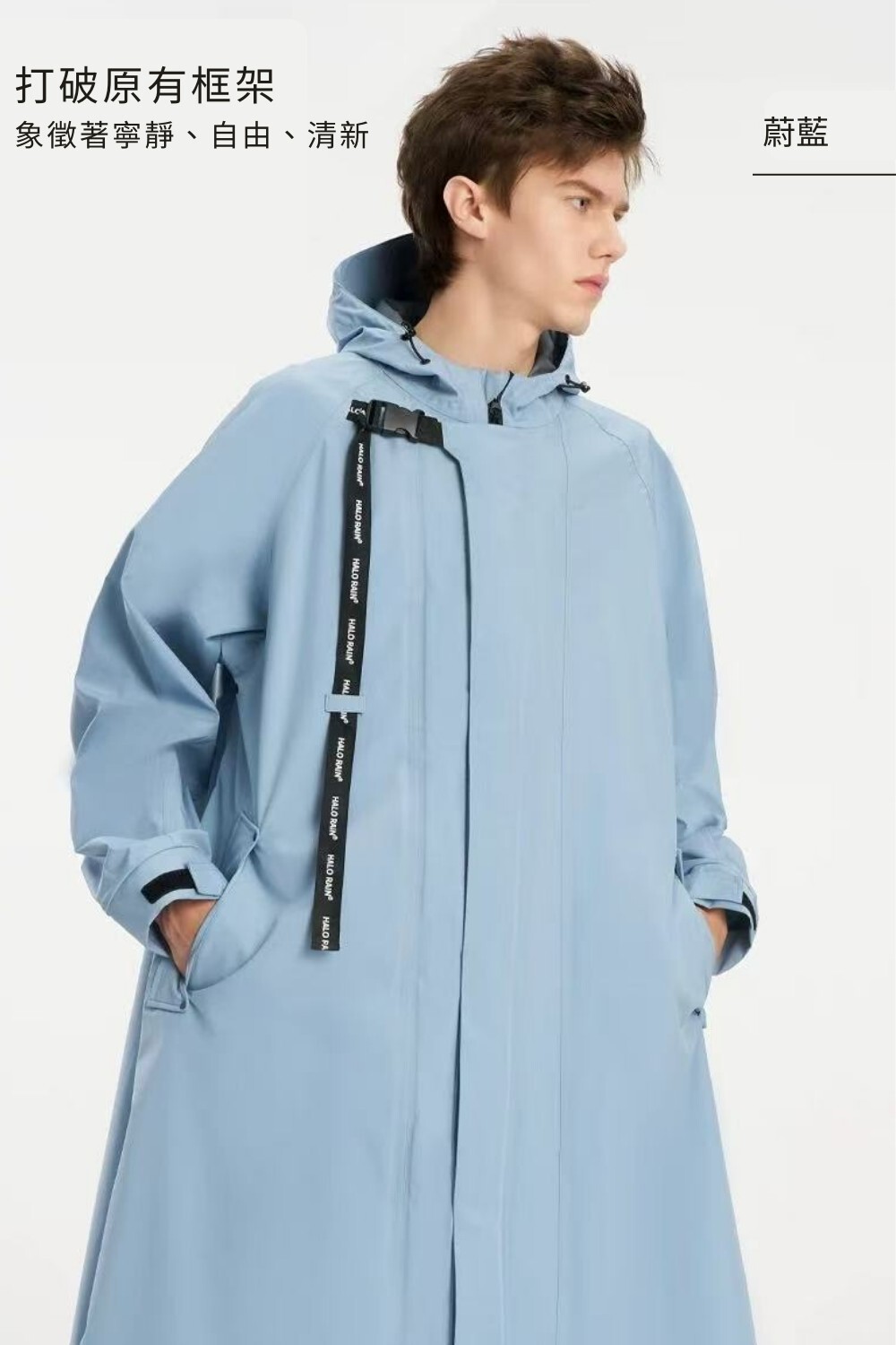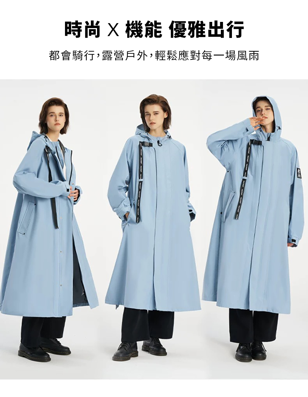 ✔️外型如風衣外套,穿著舒適不黏膚,擺脫傳統雨衣厚重感