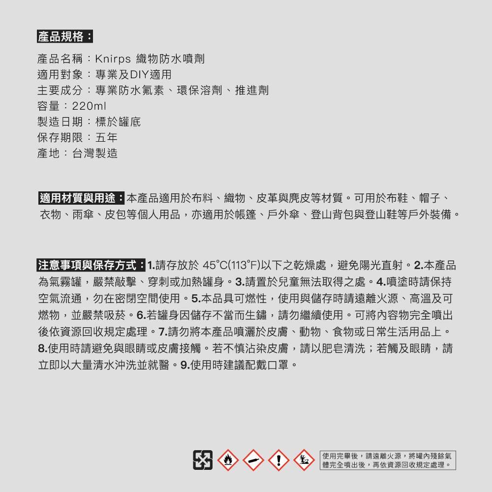 傘布、戶外服飾、露營帳篷、鞋面與背包皆能全面防護