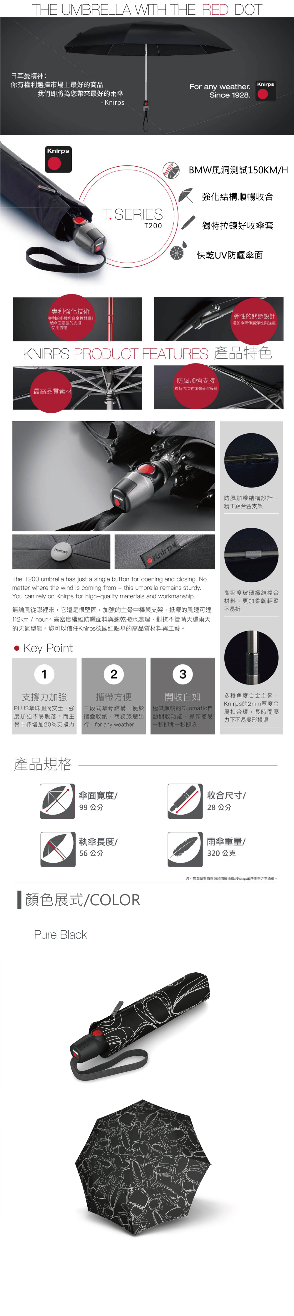 Knirps®德國紅點傘|T.200 自動開收傘-Pure Black