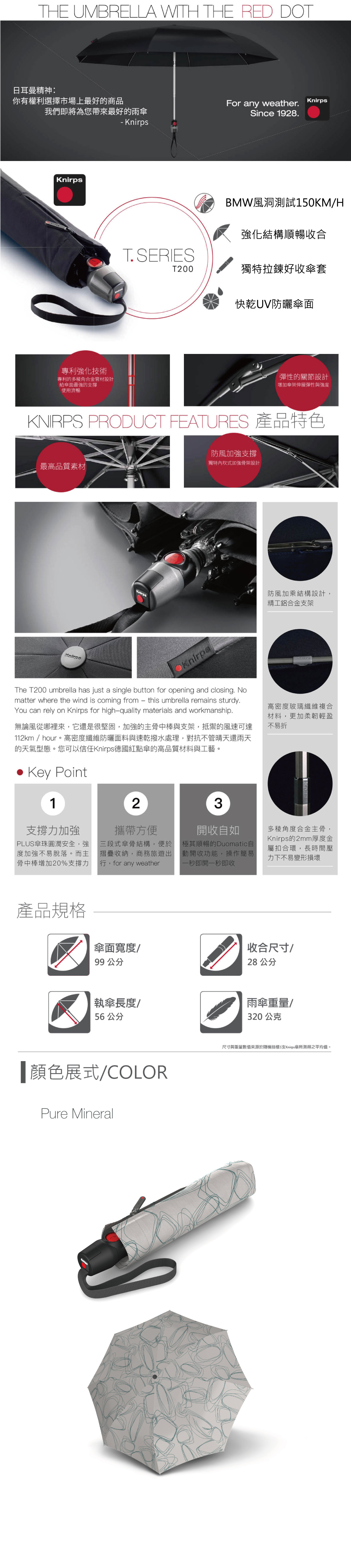Knirps®德國紅點傘|T.200 自動開收傘-Pure Mineral