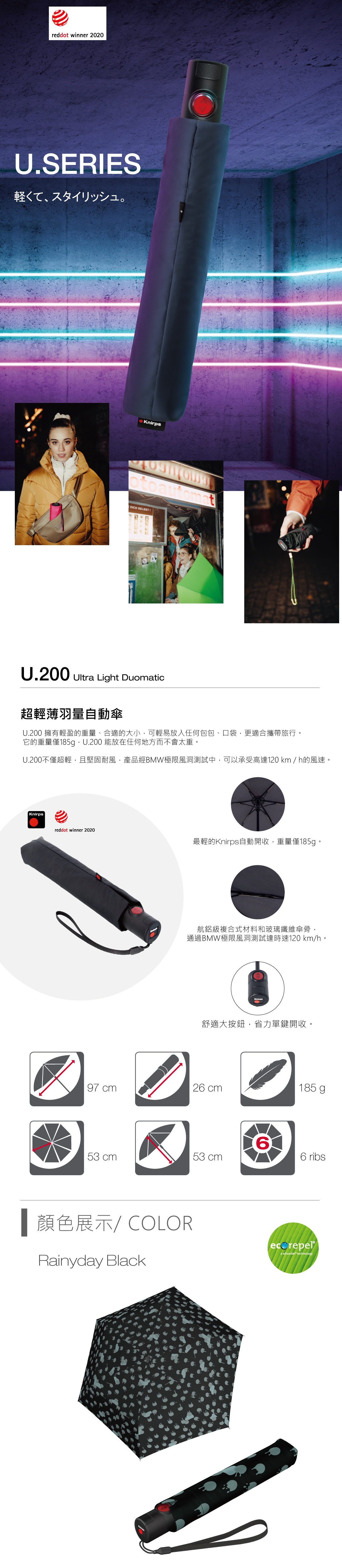 Knirps®德國紅點傘|U.200 超輕薄羽量自動傘-Rainyday Black
