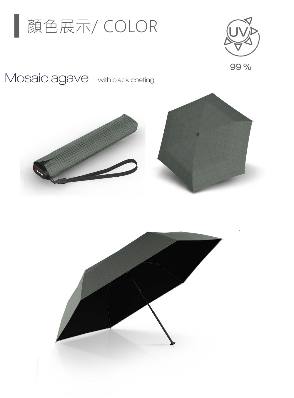 Knirps®德國紅點傘|US.050 極致輕量黑膠防曬手動傘-Mosaic agave