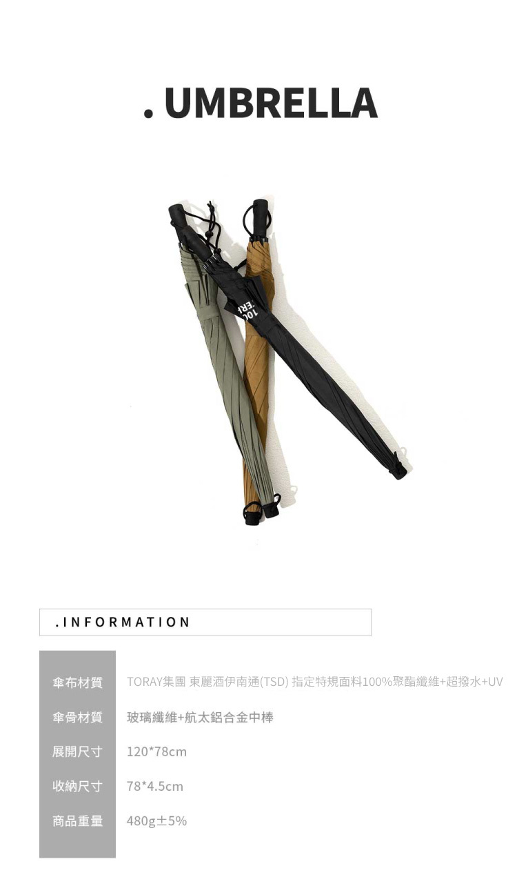 TORAY集團 東麗酒伊南通(TSD) 指定特規面料,擁有可靠的防水性能,通過各項測試:高級撥水、UV加工,在強降雨、陣雨、陽光照射的天氣下也能發揮堅固的耐久性。