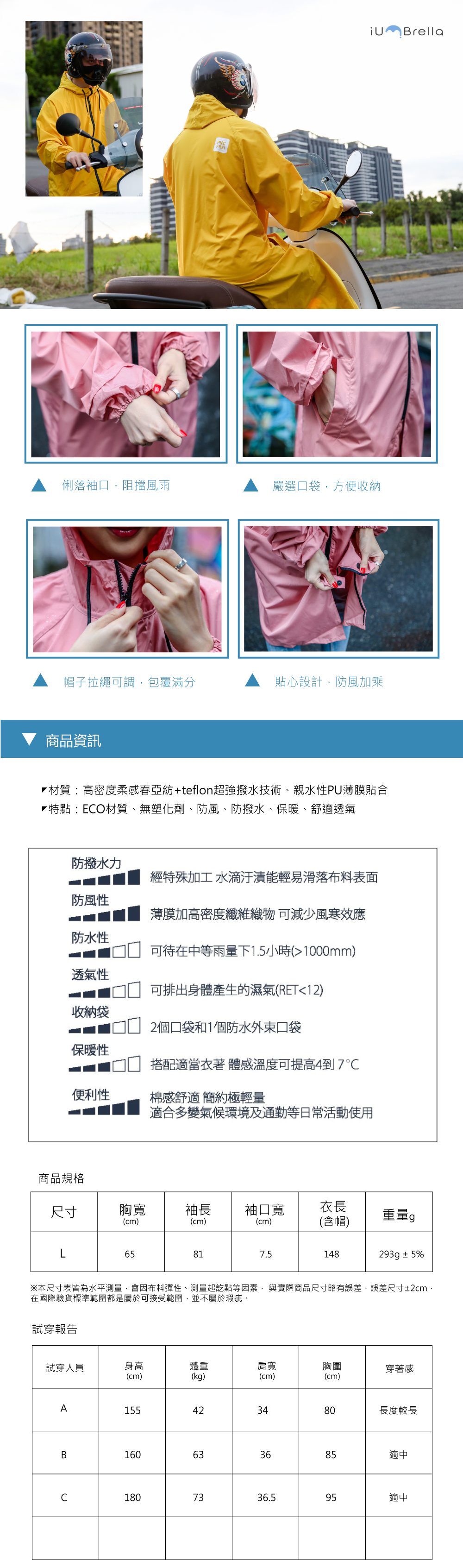 .風雨衣衣長和拉鍊同步加長10公分,維持好看版型