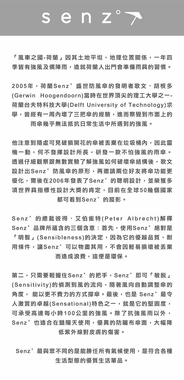 ・荷蘭開發的空氣力學原理的專利結構,像飛機的機翼一樣順暢承受風速100km/h的強風。 (颱風風速61.2km/h以上)。