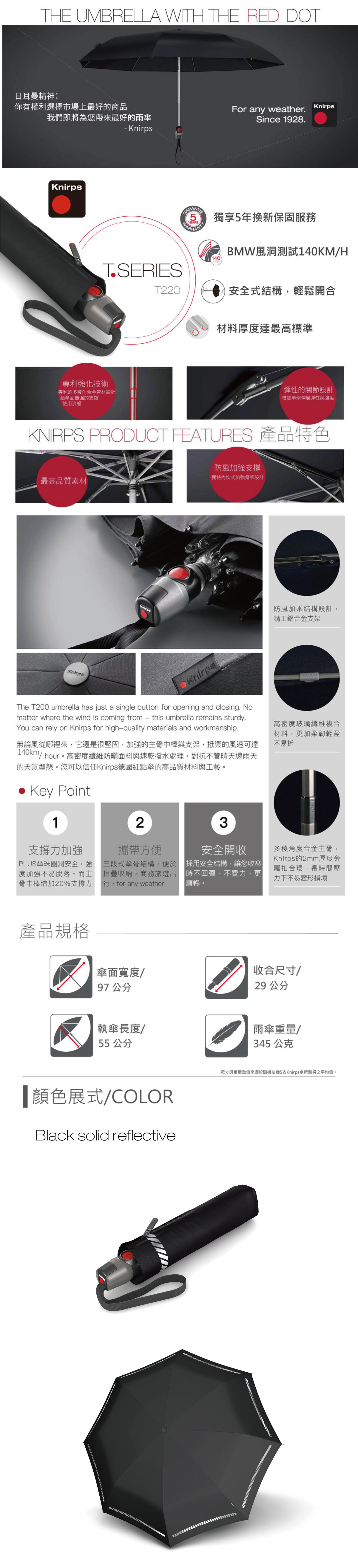 Knirps®德國紅點傘|T.220 安全自動開收傘-Black Solid Reflective Safety