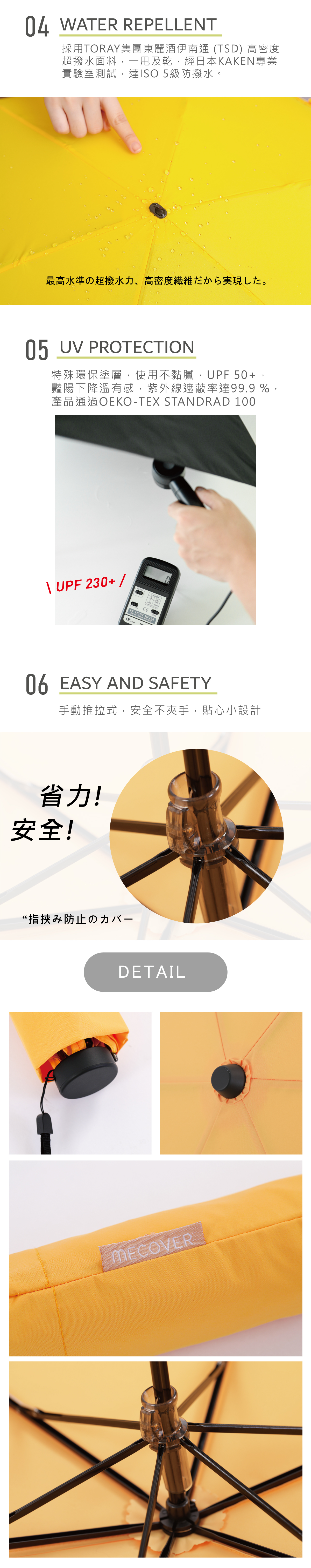 採用TORAY集團東麗酒伊南通 (TSD) 頂級超撥水面, 長效速乾撥水,防曬UPF50+